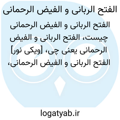 [ویکی نور] الفتح الربانی و الفیض الرحمانی، تألیف عبدالقادر جیلانی (561-470ق)، با تحقیق احمد عبدالرحیم سایح و توفیق علی وهبه، کتابی است شامل تعدادی از مجالس وعظ نویسنده که در فاصله سال های 545 و 546 ایراد کرده است.