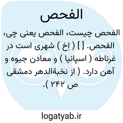 الفحص. [ ] ( اِخ ) شهری است در غرناطه ( اسپانیا ) و معادن جیوه و آهن دارد. ( از نخبةالدهر دمشقی ص 242 ).