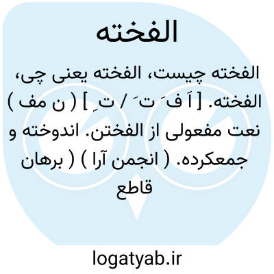 الفخته. [ اَ ف َ ت َ / ت ِ ] ( ن مف ) نعت مفعولی از الفختن. اندوخته و جمعکرده. ( انجمن آرا ) ( برهان قاطع ) ( آنندراج ). اندوخته. ( فرهنگ رشیدی ). گردکرده شده و جمعکرده شده. ( مؤید الفضلاء ). اندوخته و محصول. ( ناظم الاطباء ). الفخده. الفنجیده. ( فرهنگ رشیدی ). رجوع به الفختن و الفاختن شود: