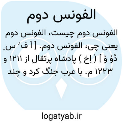 الفونس دوم. [ اَ ف ُ س ِ دُوْ وُ ] ( اِخ ) پادشاه پرتقال از 1211 و 1223 م. با عرب جنگ کرد و چند بار بر آنان پیروز شد بخصوص در «قصر الملح ».