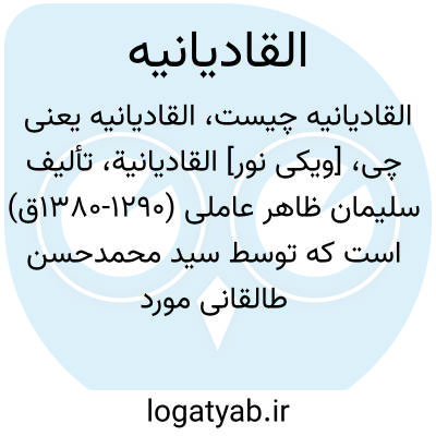 [ویکی نور] القادیانیة، تألیف سلیمان ظاهر عاملی (1290-1380ق) است که توسط سید محمدحسن طالقانی مورد تحقیق قرار گرفته است.