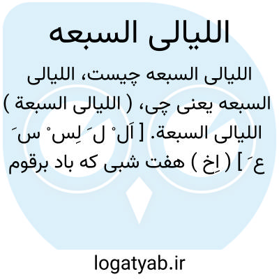 ( اللیالی السبعة ) اللیالی السبعة. [ اَل ْ ل َ لِس ْ س َ ع َ ] ( اِخ ) هفت شبی که باد برقوم عاد وزید و آنان را هلاک کرد: سخرها علیهم سبع لیال و ثمانیة ایام حسوماً. ( قرآن 7/69 ).