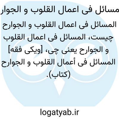 [ویکی فقه] المسائل فی أعمال القلوب و الجوارح (کتاب). «المسائل فی اعمال القلوب و الجوارح و معه المسائل فی الزهد و کتاب المکاسب و کتاب العقل»، مجموعه چهار رساله از ابو عبدالله حارث بن اسد محاسبی، در موضوع اخلاق، تزکیه و تهذیب نفس، کسب حلال و عقل می باشد که به زبان عربی و در نیمه اول قرن سوم هجری نوشته شده است.