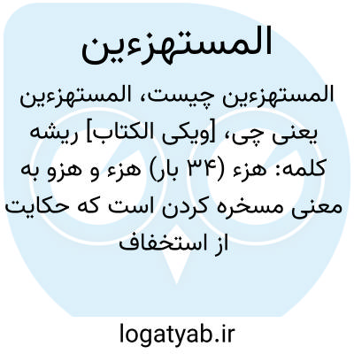 هزء و هزو به معنی مسخره کردن است که حکایت از استخفاف مسخره شده دارد، اولی به ضم زاء آمده دومی به ضم هر دو. استهزاء نیز به معنی مسخره کردن است.. بگو آیا به خدا و آیاتش و رسولش مسخره و شوخی میکردید؟!. «هُزُواً» به ضم هاء و زاء یازده بار در قرآن مجید آمده و همه مصدر به معنای مفعول اند یعنی «مهزؤبه» و مسخره شده. که عبارت اخرای بی ارزش است. راجع به. که نسبت آن به خدا داده شده رجوع شود به «مکر».. آیه ماقبل این است «فَاصْدَعْ بِما تُؤْمَرُ وَ أَعْرِضْ عَنِ الْمُشْرِکینَ - اِنَّا کَفَیْناکَ» یعنی آنچه را که امر میشوی آشکار کن و از مشرکان روی گردان زیرا که ما از تو مسخره کنندگان را کفایت کردیم (به تو نتوانند آزاری رسانند) معلوم میشود که عدهای با نفوذ از مشرکان آن جناب را مسخره میکردهاند که خداوند در قبال آنها به آن حضرت تأمین داده است. در تفسیر عیاشی نقل کرده: آنها پنج نفر از قریش بودند: ولید بن مغیره مخزومی، عاص بن وائل سهمی، حارث بن حنظله، اسودبن عبد یغوث، اسود بن مطلب بن اسد. چون خدا فرمود «اِنَّا کَفَیْناکَ الْمُسْتَهْزِءینَ» آن حضرت دانست که خدا خوارشان کرده است و خدا آنها را به مرگ خوار کننده از بین برد. در مجمع سومی را حرث بن قیس نقل کرده و آنگاه کیفیت نابودیشان را نقل نموده است.