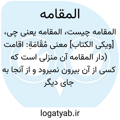 دانشنامه اسلامی [ویکی الکتاب] معنی مُقَامَةِ: اقامت (دار المقامه آن منزلی است که کسی از آن بیرون نمیرود و از آنجا به جای دیگر کوچ نمیکند)ریشه کلمه: قوم (۶۶۰ بار)