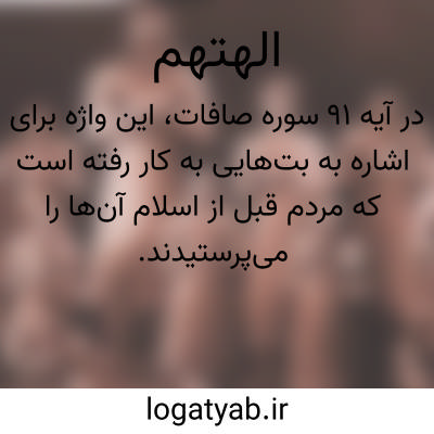 در آیه ۹۱ سوره صافات، این واژه برای اشاره به بت‌هایی به کار رفته است که مردم قبل از اسلام آن‌ها را می‌پرستیدند. پیامبر یا شخص مورد نظر در آیه، با لحنی ریشخندآمیز از بت‌ها می‌پرسد که آیا آن‌ها غذا می‌خورند یا نه، که نشان‌دهنده بی‌حالی و ناتوانی این معبودهاست. این نوع استفاده، نقدی است بر پرستش اشیاء یا موجوداتی که قدرت واقعی ندارند.