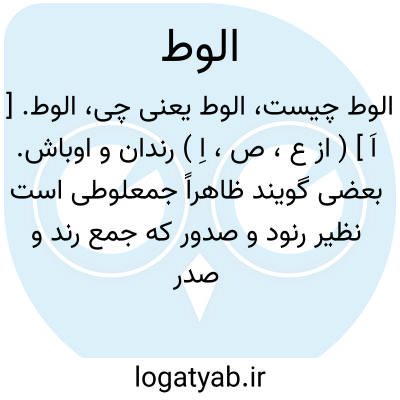 الوط. [ اَ ] ( از ع، ص، اِ ) رندان و اوباش. بعضی گویند ظاهراً جمعلوطی است نظیر رنود و صدور که جمع رند و صدر است، وصاحب بهار عجم گوید: در این سخن تأمل است، چه در رنود و صدور حرف راء و صاد هر دو فاء کلمه و اصلی اند ولی همزه الوط اصلی نیست، مگر اینکه گوییم در لفظ تحریف روی داده، و صحیح آن لووط بر وزن سقوط بر قیاس هنود است که جمع «هندی » است. ( از آنندراج ) ( بهار عجم ). امروزه بیشتر «الواط» استعمال کنند. رجوع به الواط و الواد و بهار عجم و آنندراج و چراغ هدایت شود.