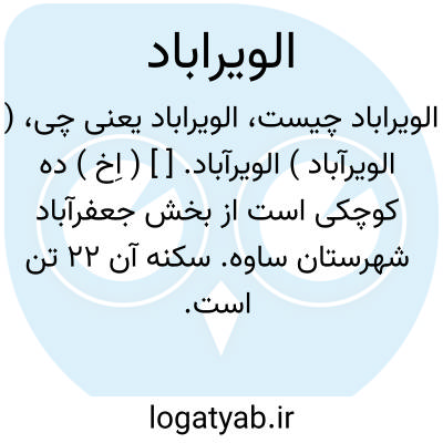 ( الویرآباد ) الویرآباد. [ ] ( اِخ ) ده کوچکی است از بخش جعفرآباد شهرستان ساوه. سکنه آن 22 تن است. ( از فرهنگ جغرافیایی ایران ج 1 ).