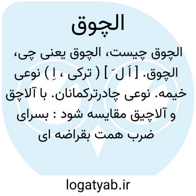 الچوق. [ اَ ل َ ] ( ترکی، اِ ) نوعی خیمه. نوعی چادرترکمانان. با آلاچق و آلاچیق مقایسه شود: