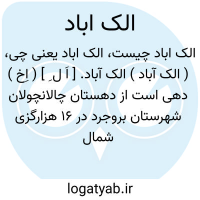 ( الک آباد ) الک آباد. [ اَ ل ِ ] ( اِخ ) دهی است از دهستان چالانچولان شهرستان بروجرد در 16 هزارگزی شمال باختری چالانچولان و 5 هزارگزی باختر شوسه بروجرد. جلگه و معتدل است. سکنه آن 370 تن شیعه هستندکه به لری و فارسی سخن میگویند. آب آن از رودخانه تأمین میشود و محصول آن غلات، و شغل اهالی زراعت است.راه مالرو دارد. ( از فرهنگ جغرافیایی ایران ج 6 ).