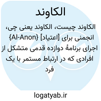 {Al-Anon} [اعتیاد] انجمنی برای اجرای برنامۀ دوازده قدمی متشکل از افرادی که در ارتباط مستمر با یک فرد الکلی بوده اند * واژۀ الکاوند از ادغام دو واژۀ الکل و خویشاوند، به قیاس با صورت لاتین آن، ساخته شده است