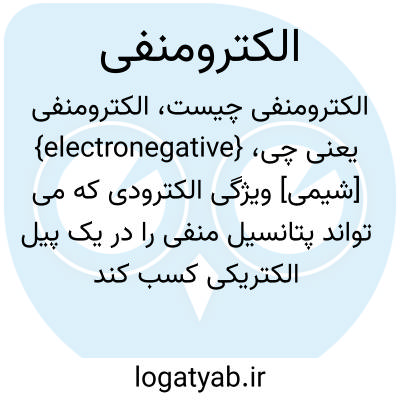 {electronegative} [شیمی] ویژگی الکترودی که می تواند پتانسیل منفی را در یک پیل الکتریکی کسب کند
