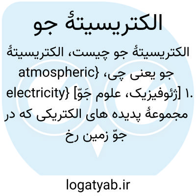 {atmospheric electricity} [ژئوفیزیک، علوم جَوّ] 1. مجموعۀ پدیده های الکتریکی که در جوّ زمین رخ می دهد 2. مبحثی که در آن به مطالعۀ فرایندهای الکتریکی ای می پردازند که در جوّ زمین رخ می دهد