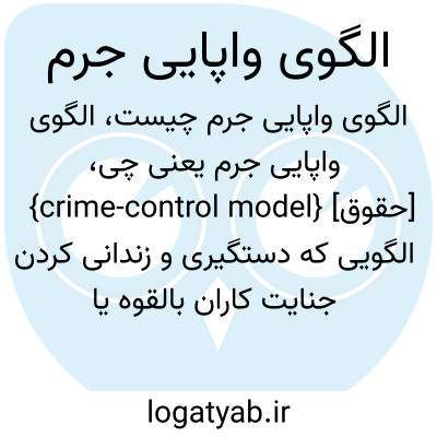 {crime-control model} [حقوق] الگویی که دستگیری و زندانی کردن جنایت کاران بالقوه یا مجرمان درخطر براساس آن اعمال می شود