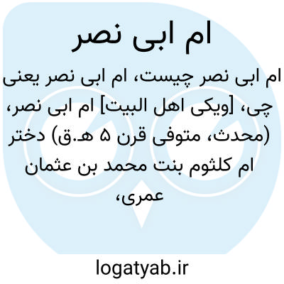 [ویکی اهل البیت] ام ابی نصر، (محدث، متوفی قرن 5 هـ.ق) دختر ام کلثوم بنت محمد بن عثمان عمری، که محمد بن عثمان دومین نائب خاص امام عصر علیه السلام بود. ام ابی نصر از بانوان عالم فاضل موثق مامون و راوی احادیث و مادر ابونصر هبة الله بن محمد کاتب است. فرزندش ابونصر از علما و محدثان و مؤلفان است.