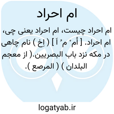 ام احراد. [ اُم ْ م ُ اَ ] ( اِخ ) نام چاهی در مکه نزد باب البصریین.( از معجم البلدان ) ( المرصع ). رجوع به المرصع شود.