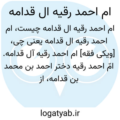 [ویکی فقه] ام احمد رقیه آل قدامه. امّ احمد رقیه دختر احمد بن محمد بن قدامه، از شخصیت های آلِ قُدامه، می باشد؛ این خاندان، خاندانی فلسطینیُ الاصل و حنبلی مذهب که فقیهان، مُسندان، حافظان و قاضیان بسیاری از آن برخاستند و فعالیت علمی ــ دینی آنان در اندیشۀ اسلامی آن روزگار و گسترش مذهب حنبلی تأثیر بزرگی به جای نهاد.