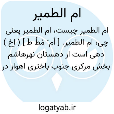 ام الطمیر. [ اُم ْ مُطْ طَ ] ( اِخ ) دهی است از دهستان نهرهاشم بخش مرکزی جنوب باختری اهواز در کنار رود کارون. در دشت واقع شده و گرمسیر است و 650 تن سکنه دارد. آب آن از رودخانه کارون تأمین میشود. محصولش غلات و سبزی و صیفی و شغل مردم کشاورزی و گله داری است. ساکنان از طایفه سادات هستند. ( از فرهنگ جغرافیایی ایران ج 6 ).