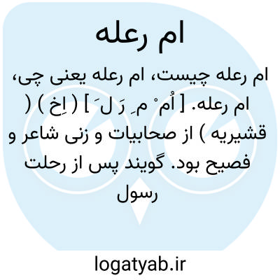 ام رعله. [ اُم ْ م ِ رَ ل َ ] ( اِخ ) ( قشیریه ) از صحابیات و زنی شاعر و فصیح بود. گویند پس از رحلت رسول اکرم حسنین را با خود برداشت و در کوچه های مدینه گردش می کرد و می گریست و چون بدر خانه فاطمه ( ع ) رسید، این بیت را انشا کرد: