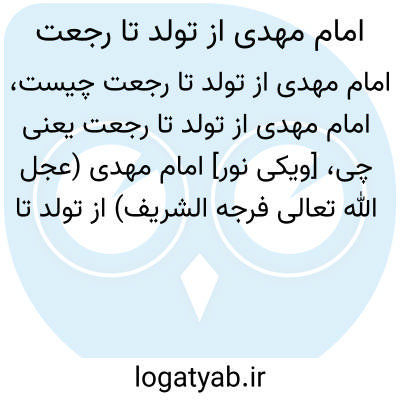 [ویکی نور] امام مهدی (عجل الله تعالی فرجه الشریف) از تولد تا رجعت. امام مهدی(عج) از تولد تا رجعت، اثر علی نظری منفرد، پژوهشی است پیرامون حضرت مهدی(عج)، از ولادت آن حضرت تا مباحث مربوط به رجعت که به زبان فارسی و در دوران معاصر نوشته شده است.