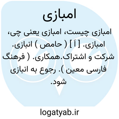 لغت نامه دهخدا امبازی. [ اَ ] ( حامص ) انبازی. شرکت و اشتراک.همکاری. ( فرهنگ فارسی معین ). رجوع به انبازی شود.