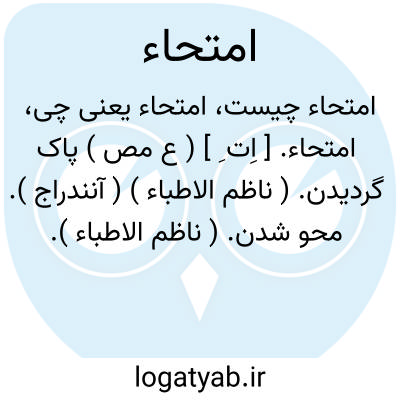 امتحاء. [ اِت ِ ] ( ع مص ) پاک گردیدن. ( ناظم الاطباء ) ( آنندراج ). محو شدن. ( ناظم الاطباء ). زایل شدن اثر چیزی. ( از اقرب الموارد ) ( از متن اللغة ). لغت ضعیفی است در امحاء. ( از اقرب الموارد ) ( از منتهی الارب ) ( از متن اللغة ).