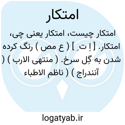 امتکار. [ اِ ت ِ ] ( ع مص ) رنگ کرده شدن به گِل سرخ. ( منتهی الارب ) ( آنندراج ) ( ناظم الاطباء ). خضاب کردن با گِل سرخ. ( از اقرب الموارد ). خضاب کردن بسرخی. ( تاج المصادر بیهقی ). || تخم کاشتن. ( منتهی الارب ) ( آنندراج ) ( ناظم الاطباء ) ( از اقرب الموارد ).