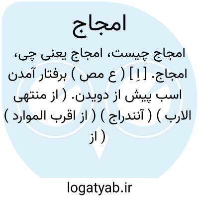 امجاج. [ اِ ] ( ع مص ) برفتار آمدن اسب پیش از دویدن. ( از منتهی الارب ) ( آنندراج ) ( از اقرب الموارد ) ( از ناظم الاطباء ). || در حال جهیدن رفتن. ( منتهی الارب ) ( از ناظم الاطباء ) ( از آنندراج ). || در شهرها گردش کردن. ( از اقرب الموارد ). || روان شدن آب در چوب. ( از اقرب الموارد ) ( از ناظم الاطباء ) ( از منتهی الارب ) ( آنندراج ).