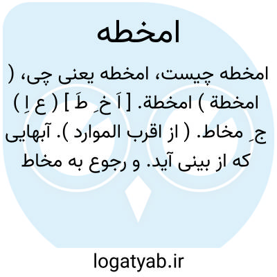 لغت نامه دهخدا ( امخطة ) امخطة. [ اَ خ ِ طَ ] ( ع اِ ) ج ِ مخاط. ( از اقرب الموارد ). آبهایی که از بینی آید. و رجوع به مخاط شود.