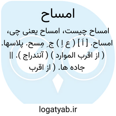 لغت نامه دهخدا امساح. [ اَ ] ( ع اِ ) ج ِ مِسح. پلاسها. ( از اقرب الموارد ) ( آنندراج ). || جاده ها. ( از اقرب الموارد ). و رجوع به مسح شود.