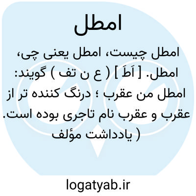 امطل. [ اَطَ ] ( ع ن تف ) گویند: امطل من عقرب؛ درنگ کننده تر از عقرب و عقرب نام تاجری بوده است. ( یادداشت مؤلف ).