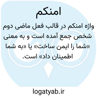 واژه «آمَنَکُم» از ریشهی أمن در زبان عربی گرفته شده و در قرآن کریم به معنای ایمن ساختن، امن کردن، ایمنی دادن، یا اطمینان دادن به کار رفته است. این واژه غالباً در قالب فعل ماضی دوم شخص جمع آمده است و به معنی «شما را ایمن ساخت» یا «به شما اطمینان داد» است. همانطور که در بسیاری از آیات قرآن دیده میشود، ریشه «أمن» با احساس امنیت، آرامش خاطر و دوری از ترس و خطر ارتباط مستقیم دارد.