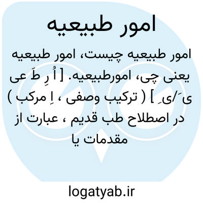 امورطبیعیه. [ اُ رِ طَ عی ی َ/ی ِ ] ( ترکیب وصفی، اِ مرکب ) در اصطلاح طب قدیم، عبارت از مقدمات یا مبادیی است که هستی و قوام وجود آدمی بر آنها نهاده شده است چنانکه اگر یکی از مقدمات نیست گردد هستی آدمی را نیز باید معدوم و کأن لم یکن پنداشت و آن مقدمات عبارتند از: ارکان، امزجه، اخلاط، اعضاء، ارواح، قوای طبیعی و نفسانی و حیوانی و افعال. و از آن جهت این مقدمات را به طبیعت منسوب داشته اند که آن ها یا از جنس ماده هستند و عبارتند از: ارکان، اخلاط، اعضاء، ارواح و یا از جنس صورت هستند و عبارتند از: امزجه، قوی ̍، و یا آنکه برای وجود آدمی غایت و نتیجه باشد و آن افعال است. پاره ای از پزشکان چهار چیز دیگر بر این مقدمات افزوده اند و آن سن، رنگ، بشره و فرق بین زن و مرد است. ( از کشاف اصطلاحات الفنون و بحر الجواهر ).
