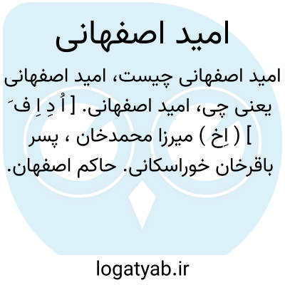 امید اصفهانی. [ اُ دِ اِ ف َ ] ( اِخ ) میرزا محمدخان، پسر باقرخان خوراسکانی. حاکم اصفهان. از شاعران قرن سیزدهم هجری بود. پدرش در فتنه زندیه کشته شد و برادر بزرگش در زمان پادشاهی آقا محمدخان قاجار بحکومت اصفهان رسید. امید پس از حکومت برادرش بافغانستان رفت و پس از بازگشت ازآنجا در دربار فتحعلی شاه راه جست. از اشعار اوست: