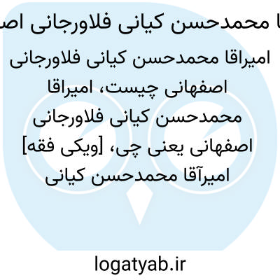 [ویکی فقه] امیرآقا محمدحسن کیانی فلاورجانی اصفهانی. امیرآقا محمدحسن کیانی فلاورجانی اصفهانی، از علمای اصفهان در قرن سیزده هجری بوده است.
