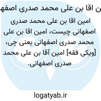 [ویکی فقه] امین آقا بن علی محمد صدری اصفهانی. امین آقا بن علی محمد صدری اصفهانی، از علما و فضلای ساکن نجف اشرف بوده است.