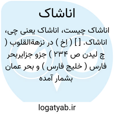 اناشاک. [ ] ( اِخ ) در نزهةالقلوب ( چ لیدن ص 234 ) جزو جزایربحر فارس ( خلیج فارس ) و بحر عمان بشمار آمده است.