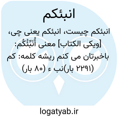 دانشنامه اسلامی [ویکی الکتاب] معنی أُنَبِّئُکُم: باخبرتان می کنمریشه کلمه: کم (۲۲۹۱ بار)نب ء (۸۰ بار)