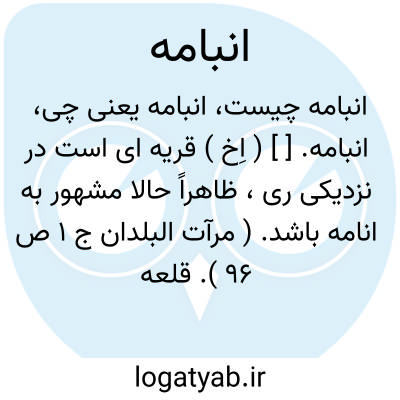 انبامه. [ ] ( اِخ ) قریه ای است در نزدیکی ری، ظاهراً حالا مشهور به انامه باشد. ( مرآت البلدان ج 1 ص 96 ). قلعه ایست نزدیک ری. ( مراصدالاطلاع از یادداشت مؤلف ). همان امامه قریه ای بشمال تهران در جبل البرز است. ( یادداشت مؤلف ). و رجوع به امامه شود.