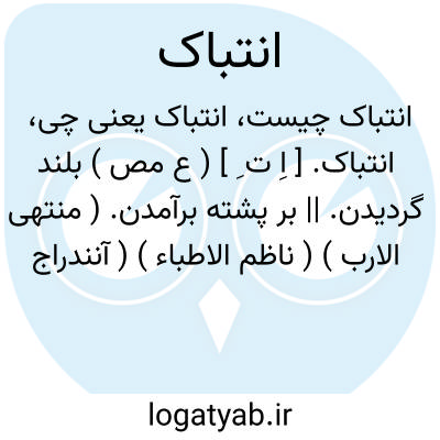انتباک. [ اِ ت ِ ] ( ع مص ) بلند گردیدن. || بر پشته برآمدن. ( منتهی الارب ) ( ناظم الاطباء ) ( آنندراج ). || بازداشته شدن قوم در بدی. ( منتهی الارب ) ( ناظم الاطباء ) ( آنندراج ) ( از اقرب الموارد ).