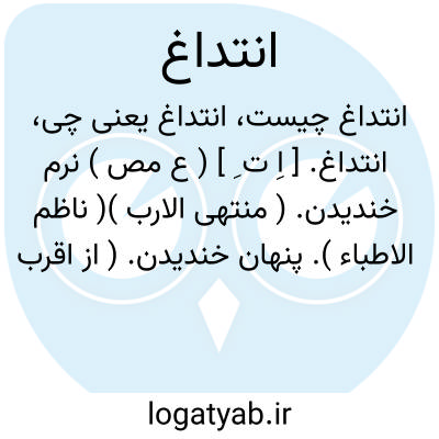 لغت نامه دهخدا انتداغ. [ اِ ت ِ ] ( ع مص ) نرم خندیدن. ( منتهی الارب )( ناظم الاطباء ). پنهان خندیدن. ( از اقرب الموارد ).