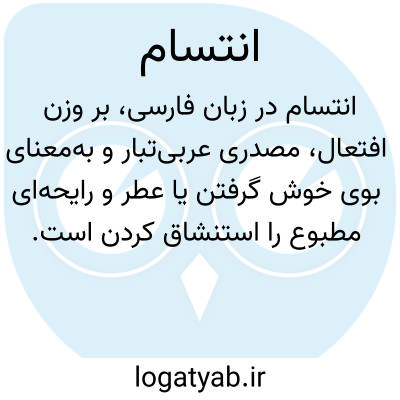 واژهٔ اِنتِسام در زبان فارسی، بر وزن اِفتِعال، مصدری عربی‌تبار و به‌معنای بوی خوش گرفتن یا عطر و رایحه‌ای مطبوع را استنشاق کردن است. این واژه حاکی از عملی است که در آن، فرد آگاهانه و با توجه کامل، رایحه‌ای خوش را به درون می‌کشد تا از لذت و اثرات آن بهره‌مند گردد. بر پایهٔ منابع کهن لغت، از جمله کَنز اللُّغات و غیاث‌اللُّغات، این معنا برای واژهٔ مذکور ثبت و تأیید شده است. کاربرد این اصطلاح، اغلب در متون ادبی و شاعرانه به‌چشم می‌خورد و بر اقداماتی ظریف و ادراکی حسی دلالت دارد که فراتر از حس بویایی ساده است و با تأمل و گیرندگی همراه می‌باشد. بنابراین، اِنتِسام تنها به معنای استشمام یک بو نیست، بلکه بر دریافت و بهره‌گیری آگاهانه از عطریات دل‌انگیز و معطر دلالت می‌کند. این واژه گویای رابطه‌ای ظریف میان انسان و جهان رایحه‌هاست و در بافتارهای فرهنگی و ادبی، نمادی از جلوه‌های لطیف و معنوی نیز به‌شمار می‌رود.