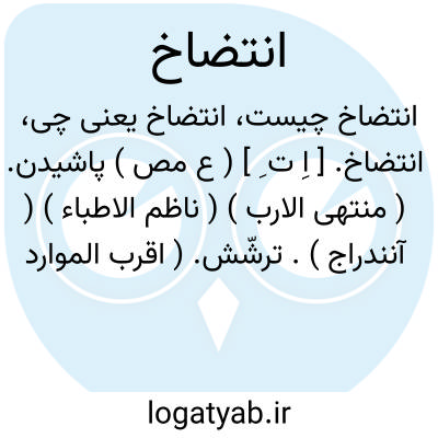 لغت نامه دهخدا انتضاخ. [ اِ ت ِ ] ( ع مص ) پاشیدن. ( منتهی الارب ) ( ناظم الاطباء ) ( آنندراج ). ترشّش. ( اقرب الموارد ). انتضاح.