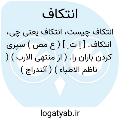 انتکاف. [ اِ ت ِ ] ( ع مص ) سپری کردن باران را. ( از منتهی الارب ) ( ناظم الاطباء ) ( آنندراج ) ( از اقرب الموارد ). از باران بگذشتن.( تاج المصادر بیهقی ). انتکفته ُ؛ یعنی بریدم باران را یعنی بریده شد از من. ( شرح قاموس ). || پی گم کردن. ( منتهی الارب ) ( ناظم الاطباء ) ( آنندراج ) ( از اقرب الموارد ). || از جایی بجایی رفتن. ( منتهی الارب ) ( ناظم الاطباء ) ( آنندراج ). بیرون رفتن از زمینی بزمینی. ( از اقرب الموارد ). || میل کردن. ( شرح فارسی قاموس ) ( آنندراج ) ( از اقرب الموارد ). || شکسته شدن عهد. ( منتهی الارب ) ( ناظم الاطباء ) ( آنندراج ). || گسسته شدن ریسمان. ( از اقرب الموارد ). تاب بازدادن ریسمان. ( شرح قاموس ). || تبری. ( از اقرب الموارد ). عار و ننگ داشتن. ( غیاث اللغات ). || برطرف و پاک کردن عرق ( خوی ) از پیشانی خود. ( از اقرب الموارد ).