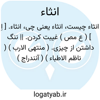 انثاء. [ اِ ] ( ع مص ) غیبت کردن. || ننگ داشتن از چیزی. ( منتهی الارب ) ( ناظم الاطباء ) ( آنندراج ) ( از اقرب الموارد ).
