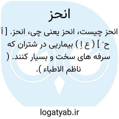 انحز. [ اَ ح َ ] ( ع اِ ) بیماریی در شتران که سرفه های سخت و بسیار کنند. ( ناظم الاطباء ).