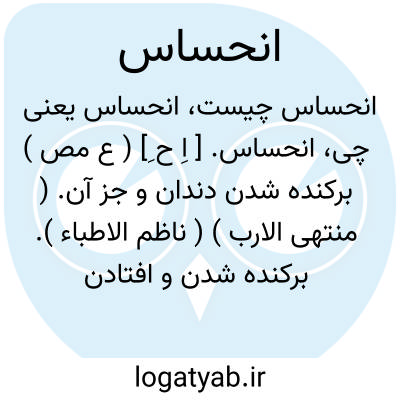 انحساس. [ اِ ح ِ] ( ع مص ) برکنده شدن دندان و جز آن. ( منتهی الارب ) ( ناظم الاطباء ). برکنده شدن و افتادن دندان. ( از اقرب الموارد ). برکنده و فروریزیده شدن. ( تاج المصادر بیهقی ). || ریخته شدن و افتادن. ( منتهی الارب )( ناظم الاطباء ). ریخته شدن. ( از شرح فارسی قاموس ).