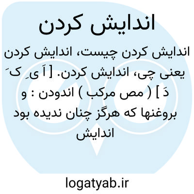 لغت نامه دهخدا اندایش کردن. [ اَ ی ِ ک َ دَ ] ( مص مرکب ) اندودن: و بروغنها که هرگز چنان ندیده بود اندایش کرد. ( تاریخ سیستان ).