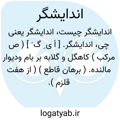 لغت نامه دهخدا اندایشگر. [ اَ ی ِ گ َ ] ( ص مرکب ) کاهگل و گلابه بر بام ودیوار مالنده. ( برهان قاطع ) ( از هفت قلزم ). کاهگل و گلابه و گچ بر بام و دیوار مالنده. ( آنندراج ). گل مال. ( فرهنگ رشیدی ). کاهگل کننده. ( فرهنگ سروری ) ( فرهنگ فارسی معین ). انداشگر. استاد کاهگل مال. استاد گچ کار. ( ناظم الاطباء ).