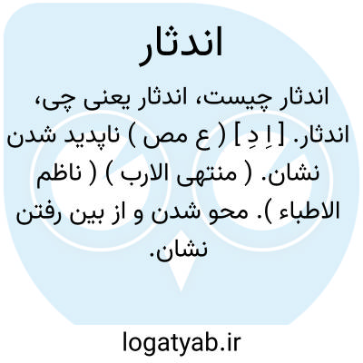 اندثار. [ اِ دِ ] ( ع مص ) ناپدید شدن نشان. ( منتهی الارب ) ( ناظم الاطباء ). محو شدن و از بین رفتن نشان. ( از اقرب الموارد ).